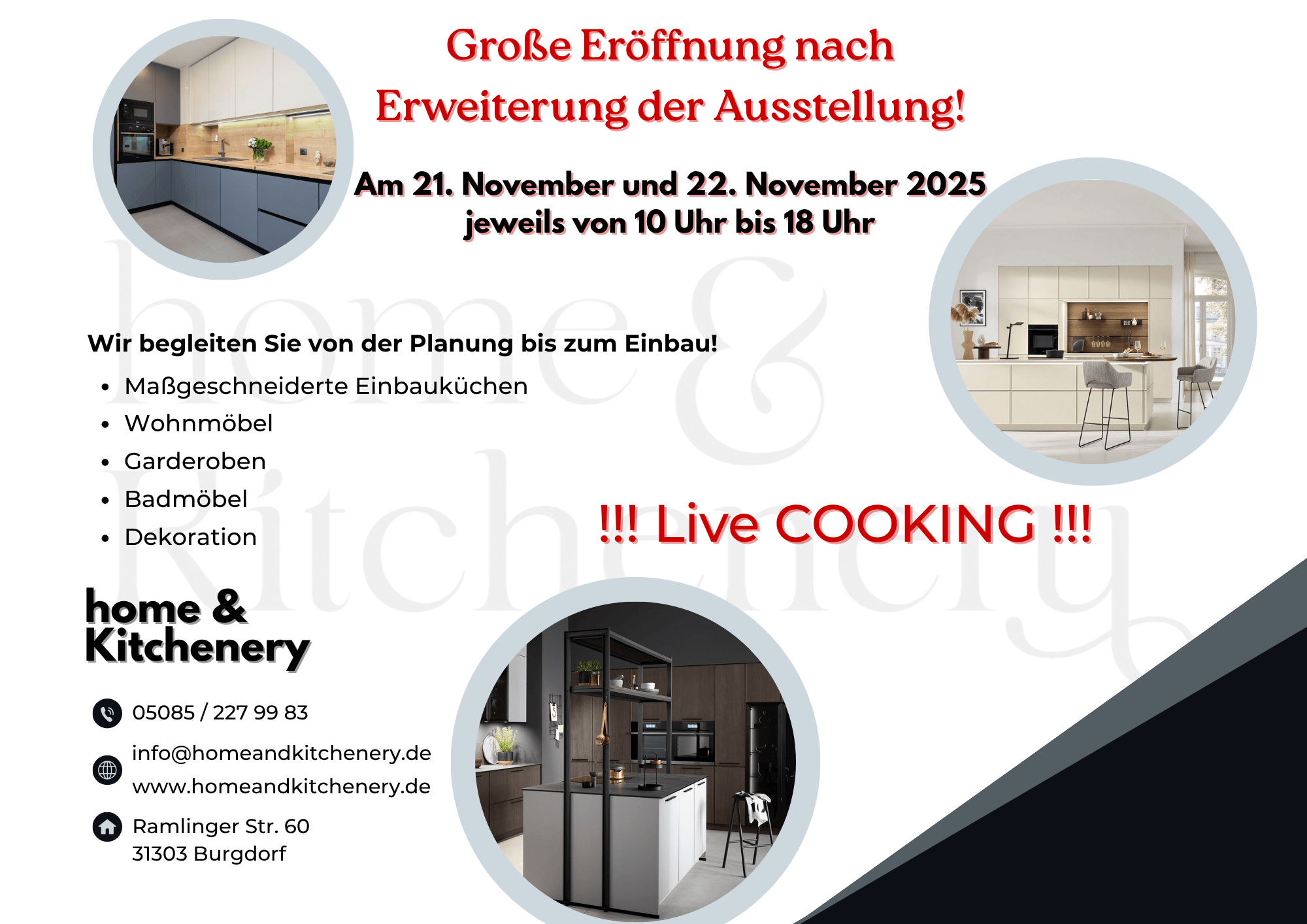 Bei Home & Kitchenery begleiten wir Sie von Anfang an persönlich und zuverlässig. Wir nehmen uns die Zeit, Ihre Wünsche in Ruhe zu besprechen und entwickeln gemeinsam mit Ihnen die ideale Lösung für Ihr Zuhause.
